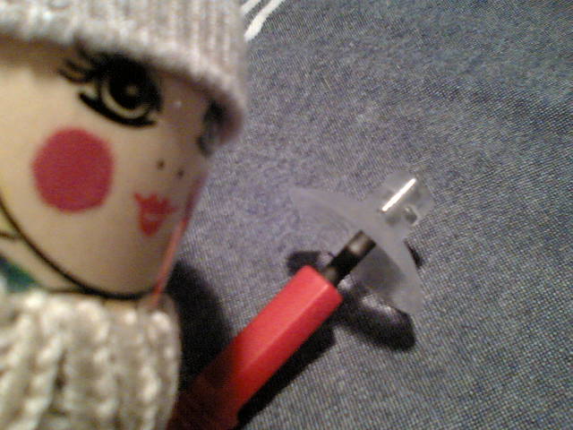 まず、吸盤のてっぺんに細いドライバーを入れて、穴を下まで貫通させるよ。