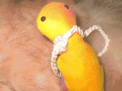 ねこさんのおなかにからまっていたとかげちゃんに、