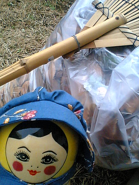 「まずほうきと熊手で落ち葉をまとめて」