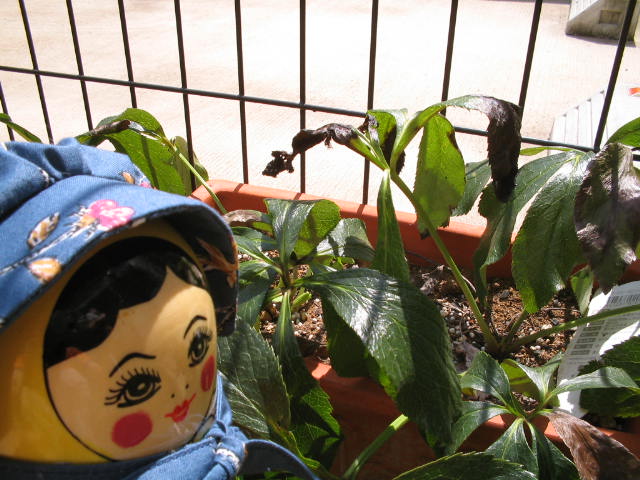 「クリスマスローズの葉が黒くなってる・・!」